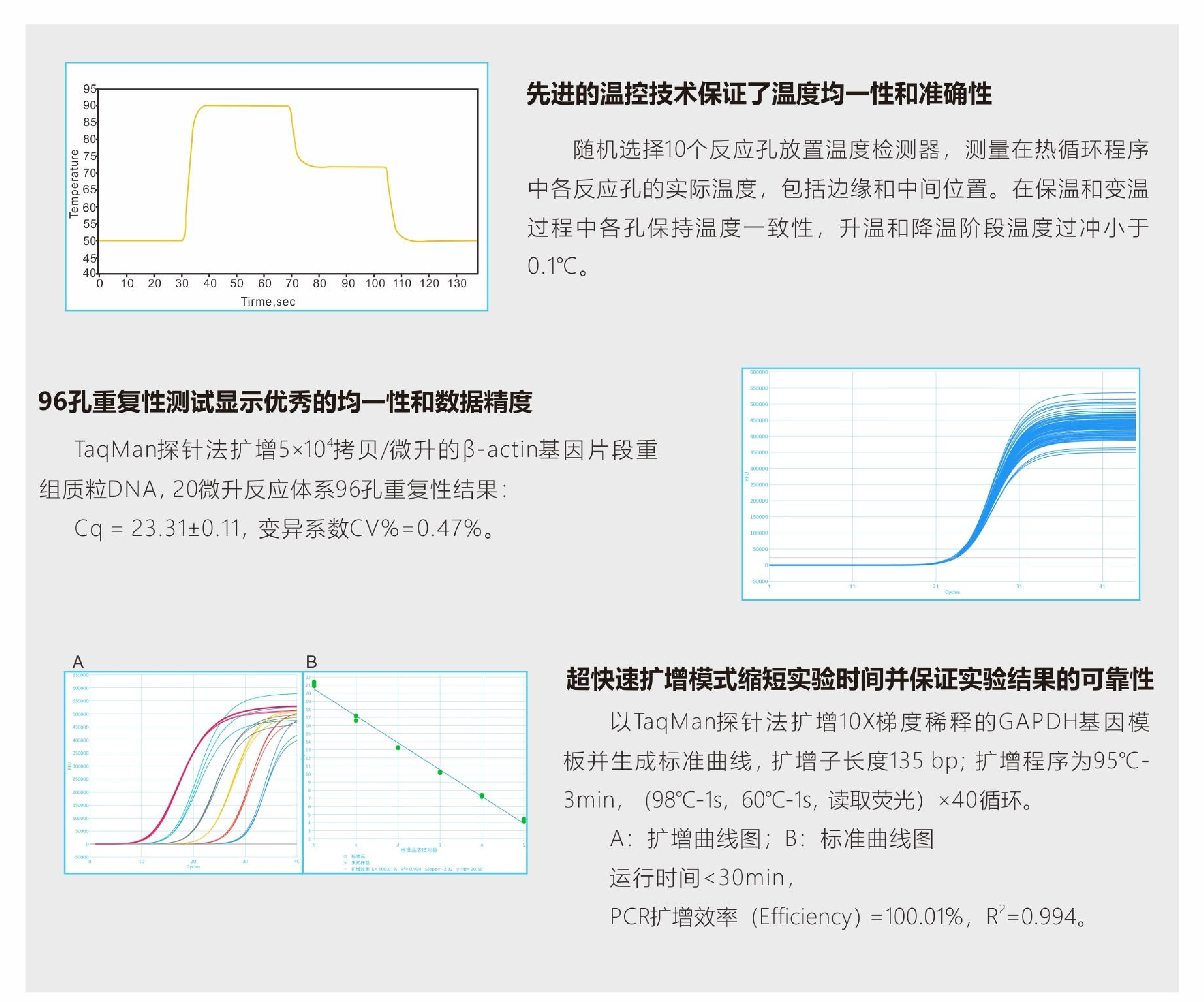 - 支持快速反应模式,30分钟内可完成40个标准PCR循环